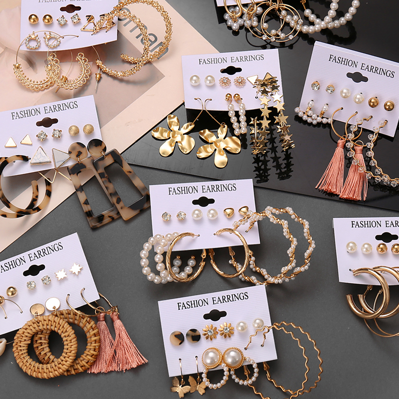 Name: Women Fashion Retro Geometric Pearl Earrings Set Material: alloy Color: as the picture Style: simple&fashion Occasion : Party Birthday Gift Package : 1 set earrings