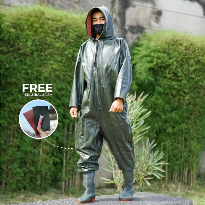 SET Sepatu terbaru: langsung pakai menyatu dengan Badan dan praktis seperti memakai baju. Waders / Baju anti banjir adalah sejenis boot yang panjang, membentang dari telapak kaki sampai ke kepala. Jadi bisa melindungi dari kotoran, air, lumpur dll.