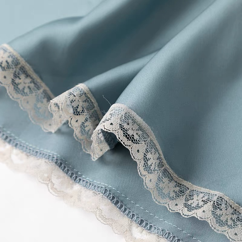 Detail Set Baju tidur renda deep V-Neck sexy lingerie bahan satin lace