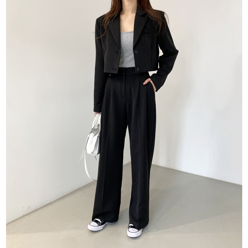 Detail Set Baju Wanita/ Korean Style Import Highwaist Celana Kulot/Lengan Panjang Blazer Crop/Baju Kekinian