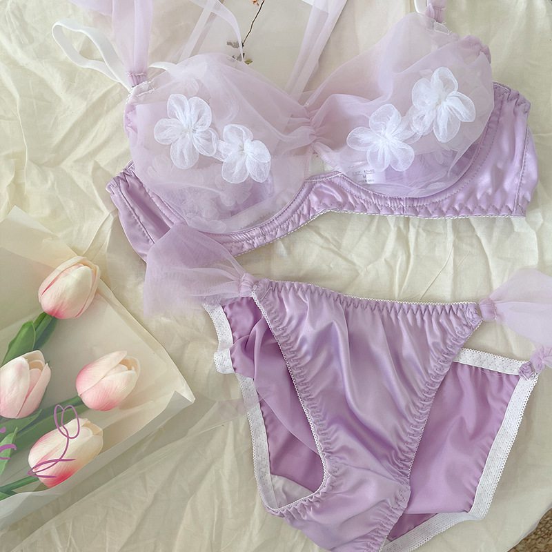 Detail Set bra jala seksi Prancis bagian tipis bagian tipis pakaian dalam wanita pakaian dalam wanita yang