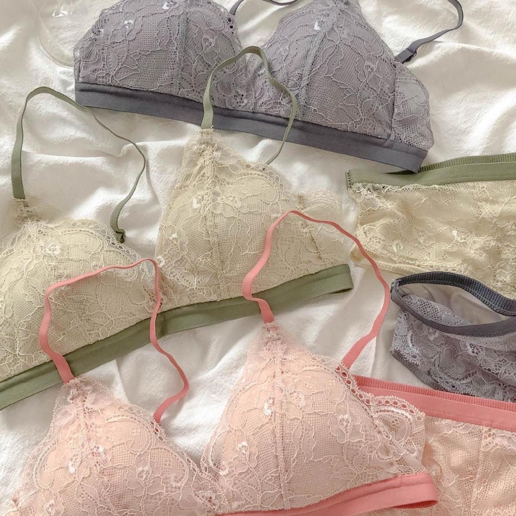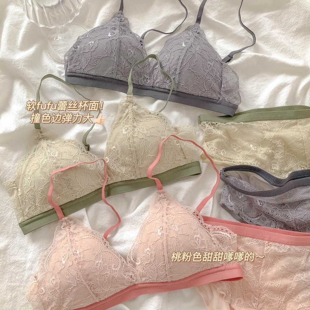 Detail Set bra wanita Jepang bra ultra tipis renda tipis renda payudara besar menunjukkan cangkir segitiga