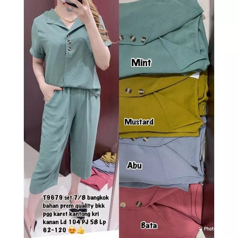 Pakaian Wanita > Set > Set Lainnya > SET Button Celana 7/8 Kringkle Terbaru/One Set Lengan Pendek Viral!!!