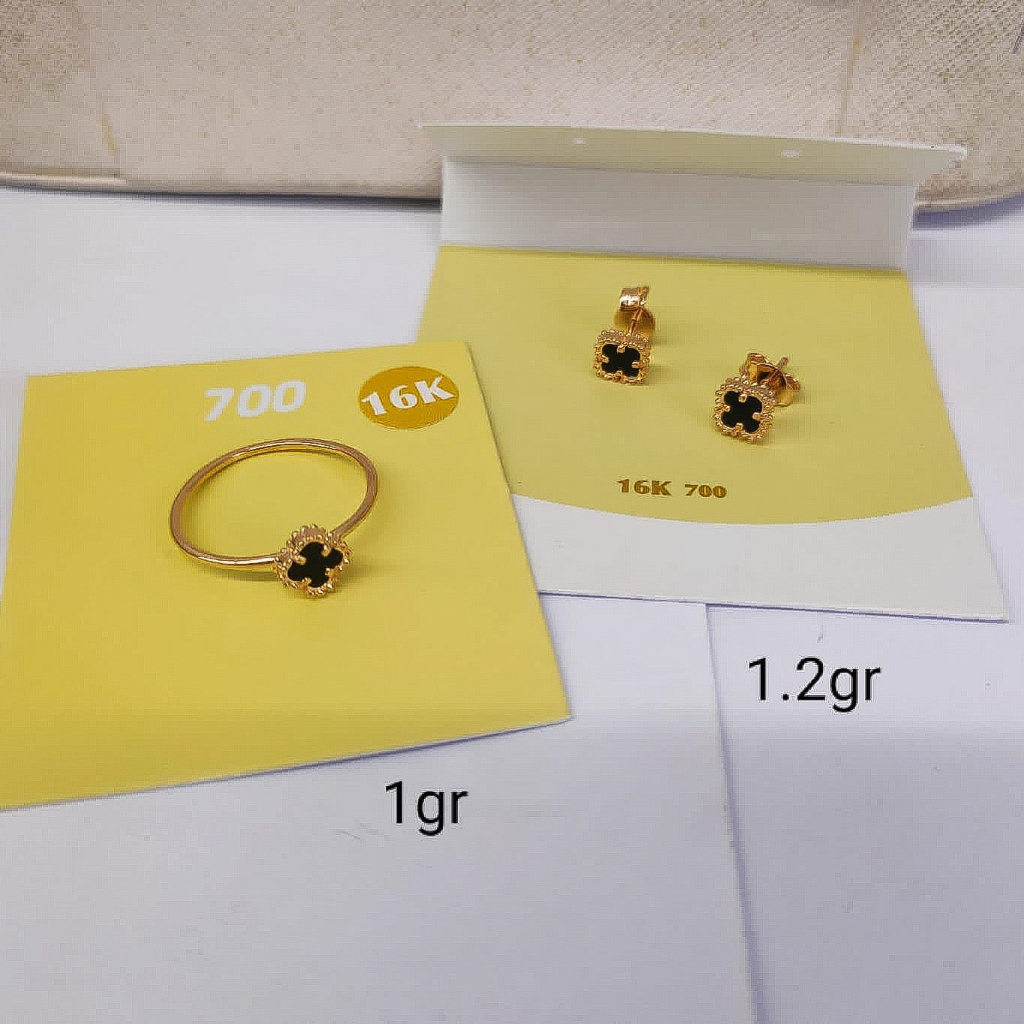 Fashion Bayi & Anak > Perhiasan > Kalung > Set cincin kalung anak dan dewasa emas asli kadar 70 75 16k 17k van vc rosegold clover hitam branded gelang serut anting bulat gantung kerabu duduk paku cucuk