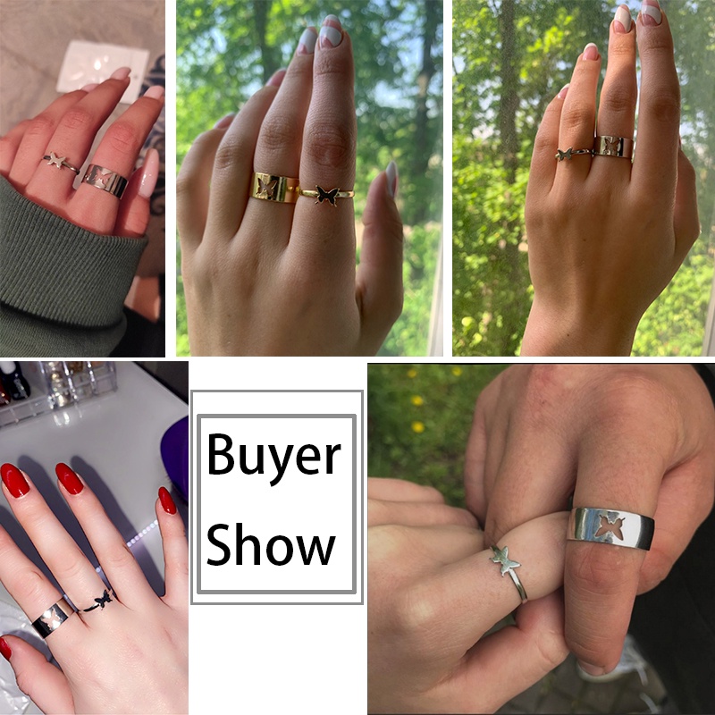 Detail Set Cincin Model Terbuka Desain Kupu-Kupu Warna Emas Perak Gaya Punk Untuk Pria Dan Wanita