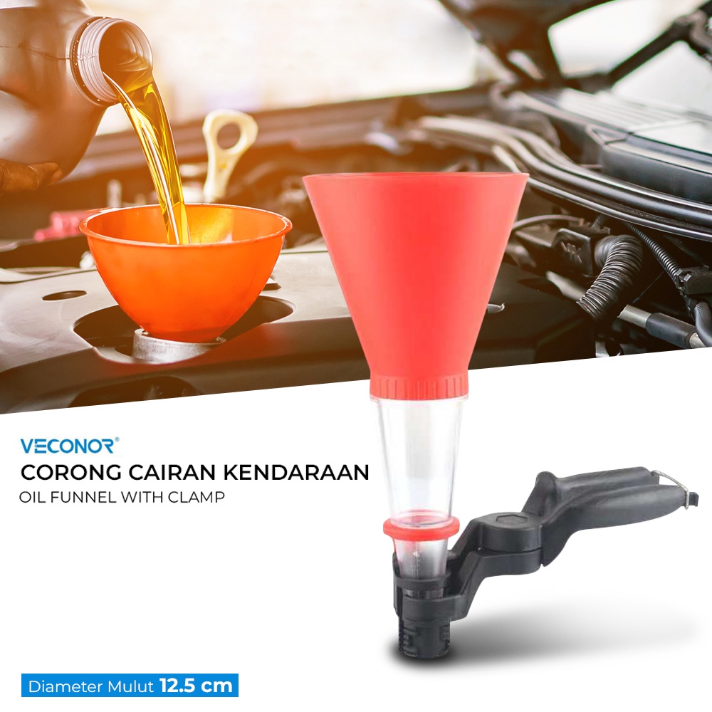 Corong ini berguna untuk memudahkan Anda memasukkan bensin, oli mesin, oli gardan, dan cairan lainnya ke kendaraan mobil atau motor. Dapat juga digunakan untuk memindahkan minyak atau cairan lain ke wadah seperti botol atau drum minyak. Terdapat penjepit yang berguna agar Anda tidak perlu memegang corong saat memindahkan cairan.