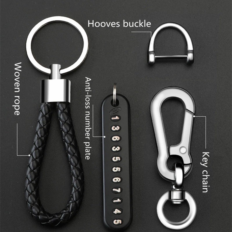 Paket termasuk: 1X gantungan kunci 1x Tag No Hp Anti hilang (6 grup) 1x Buckle