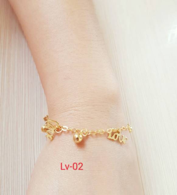 Gelang Titanium Jurai Love bahan Titanium impor Antikarat Warna : Gold