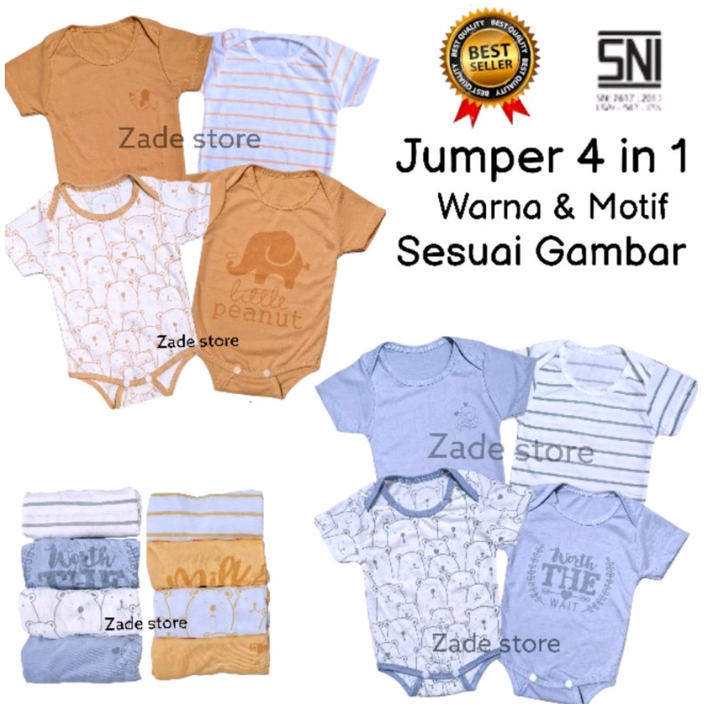 4In1 Jumper Bayi Set Baju Bayi Lengan Pendek 4 Pcs