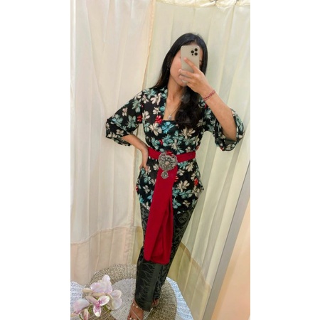 Detail set kabaya sifon stretch bunga/kebaya terompet/kebaya lonceng