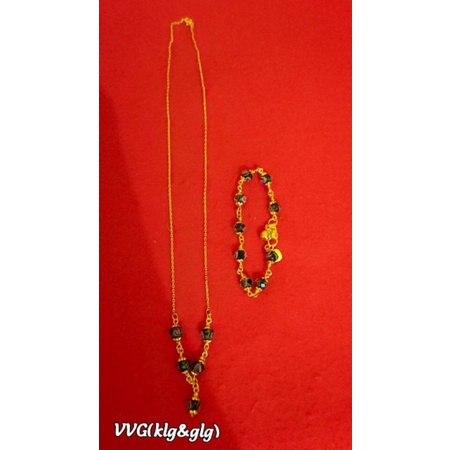 Detail set kalung koye dan gelang bola bunga lapis emas24k