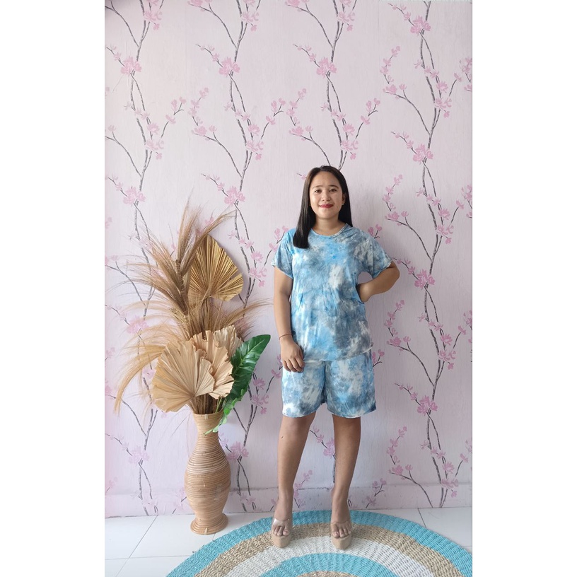 Pakaian Wanita > Pakaian Tidur & Piyama > Baju Tidur & Piyama Lainnya > Set Kaos Tie dye Pendek Kipas / One Set Jersey Wanita / Setelan Pendek Tie dye Bali