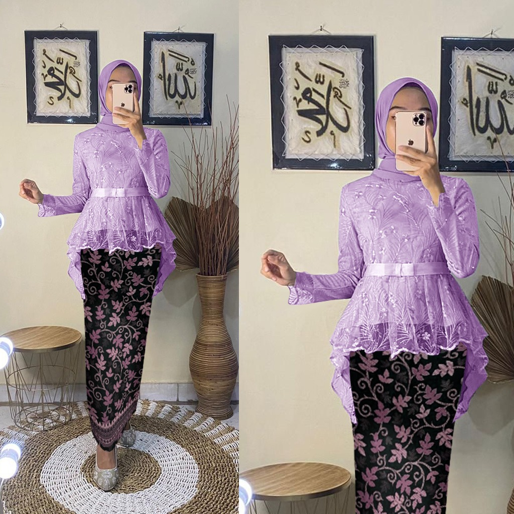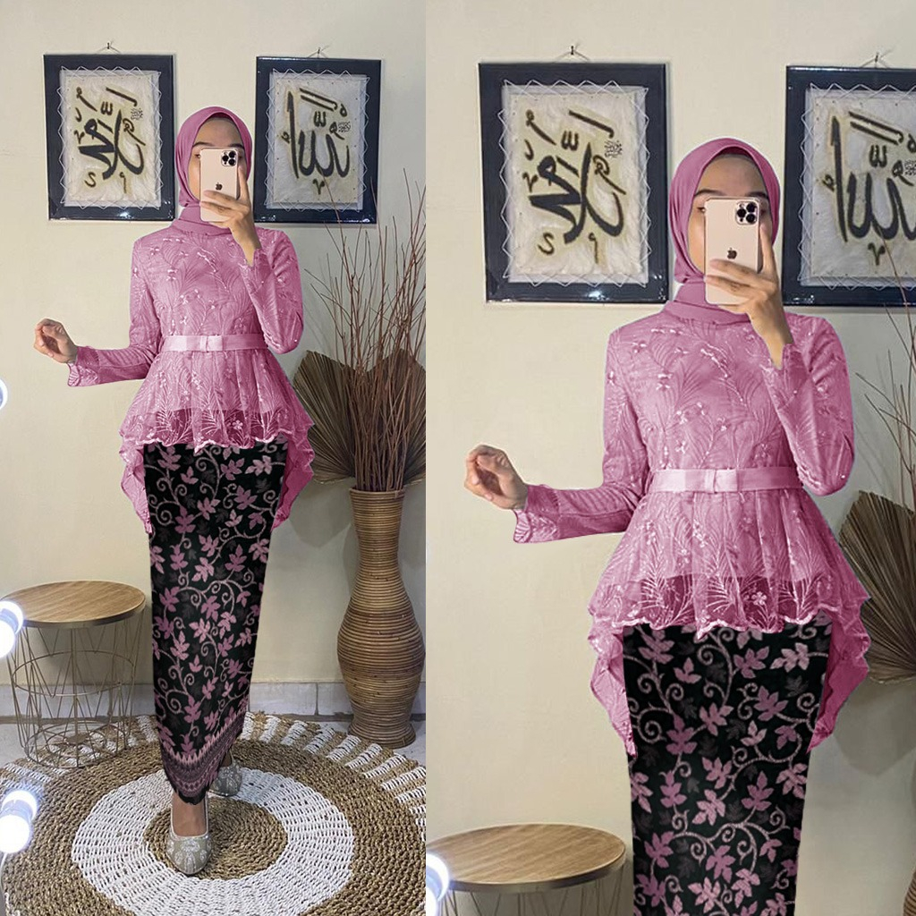 SETELAN KEBAYA BAHAN TILE MUTIARA LAPIS FURING TEBAL TANGAN PANJANG PITA HIDUP DI DEPAN ROK SPAN BATIK PAYAH FOIL MENGKILAP GODD QUALITY
