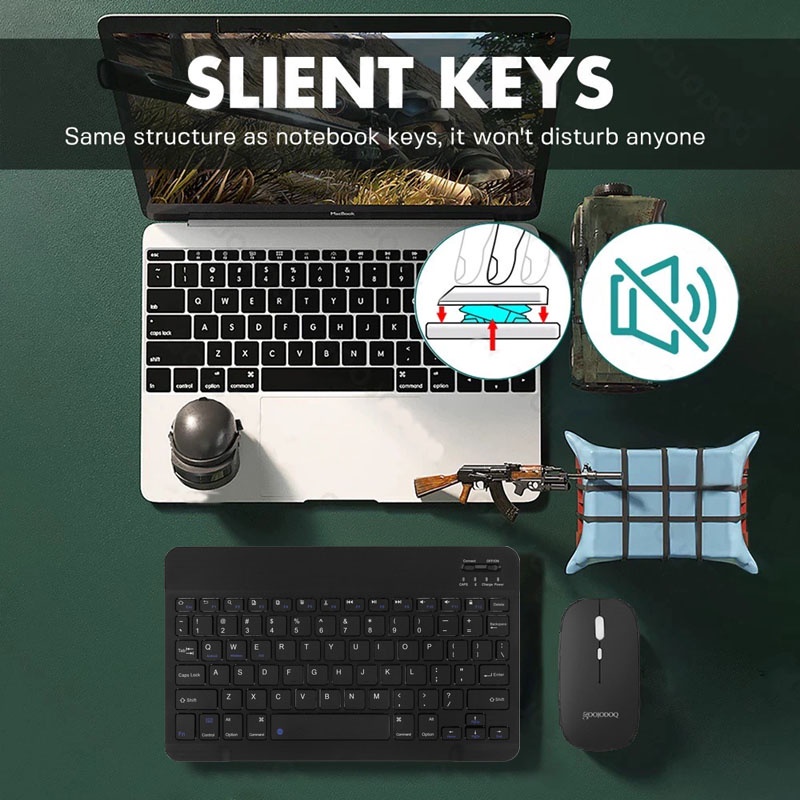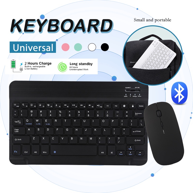 Detail Set Keyboard dan Mouse Bluetooth nirkabel, 10 inci untuk ponsel Android Laptop Tablet