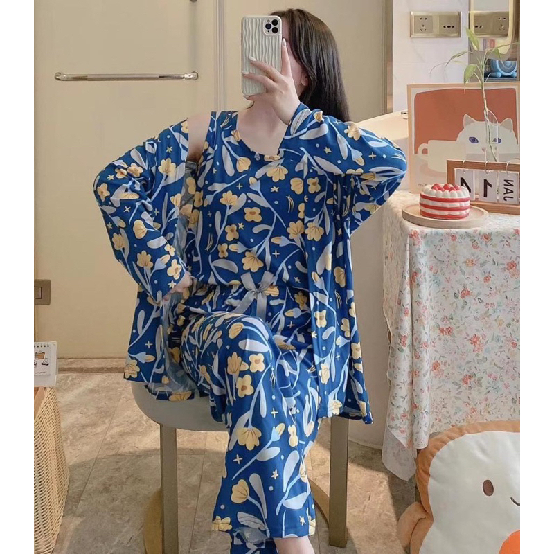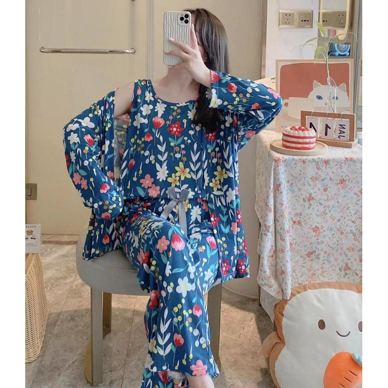 Detail Set Kimono 3in1 PP import/ Baju tidur Kimono Set Kekinian / Set Kimono wanita terbaru