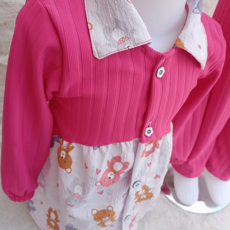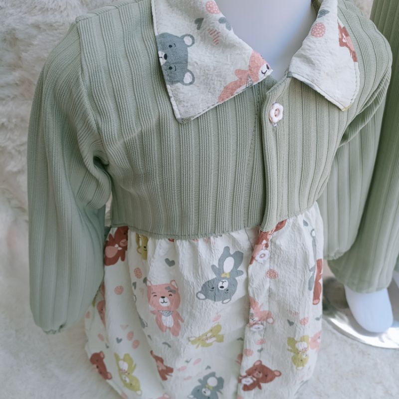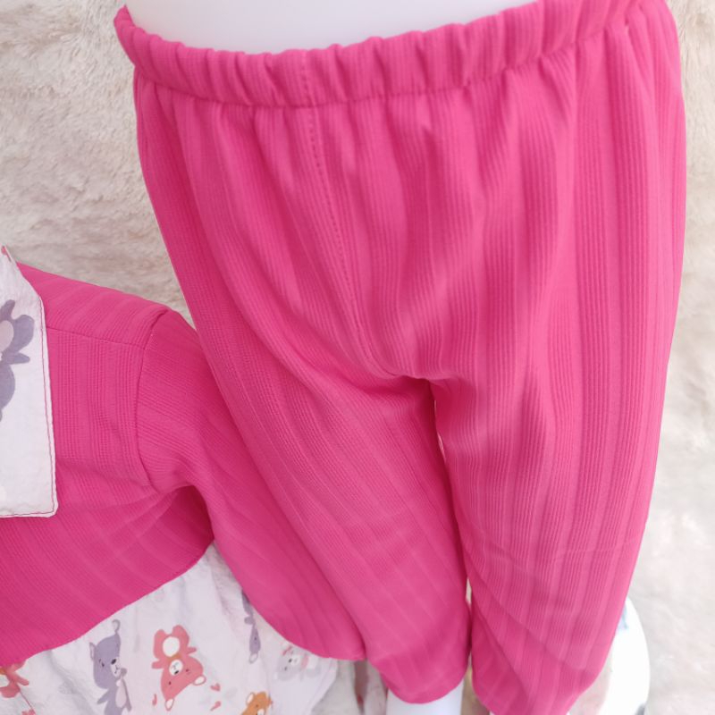 Baju Dibungkus Plastik Satuan Baju Polos Tanpa Merk / Logo / Brand Setelan Anak Setcel Anak Setcel Anak Cewek Model Korean Kids Bahan/Material Knit Hornet Kombinasi Crinkle Airflow. (Kain Polos Hornet, Kain Motif Krinkle Airflow)