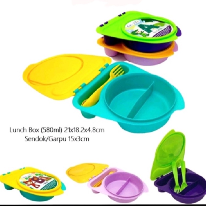 • Ukuran Kotak Makan : 21 x 18 x 5 cm • Terbuat dari material PP dan BPA FREE sehingga aman bagi anak anak • Terdapat 3 sekat didalamnnya 1 sekat untuk menyimpan sendok dan garpu • Kotak makan ini sangat cocok untuk souvenir atau hadiah ulang tahun anak