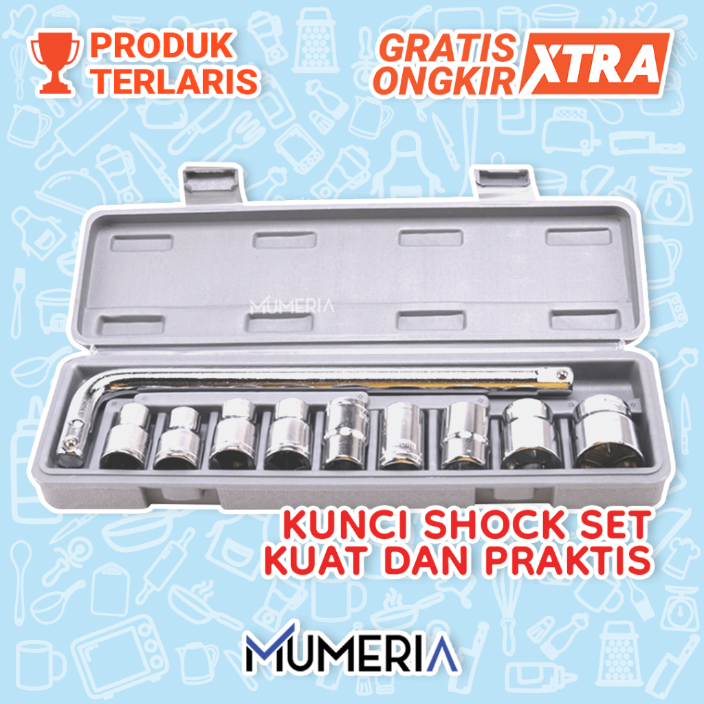 Set Kunci Shock 10 in 1 Lengkap Komplit Obeng Pas Sok Sock Shok Socket Ring Tool Kit Alat Bengkel Service Servis Mobil Motor