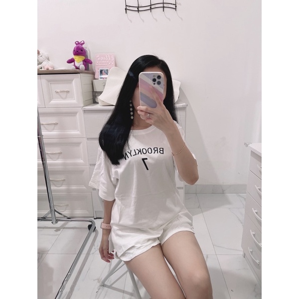 Detail Set oversize top | stelan kaos+hotpans import | setelan blooklyn | set korean santai korean | aquarius boutique89