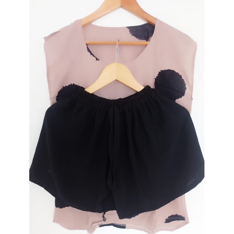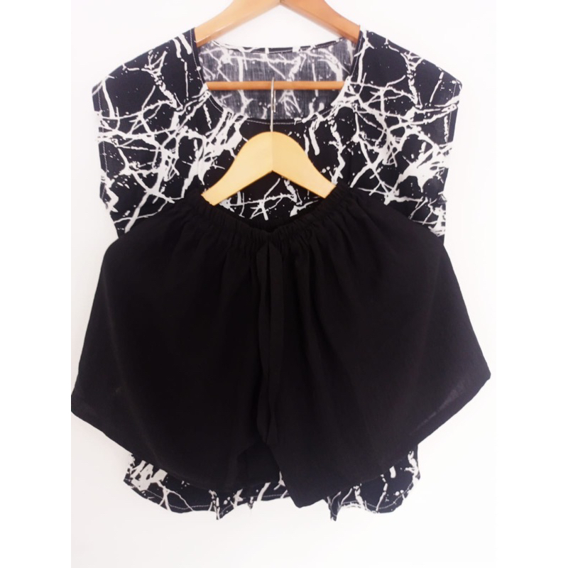Pakaian Wanita > Set > Set Wanita > SET PENDEK (3pcs 100rb )MOTIF CAMPUR CELANA HITAM