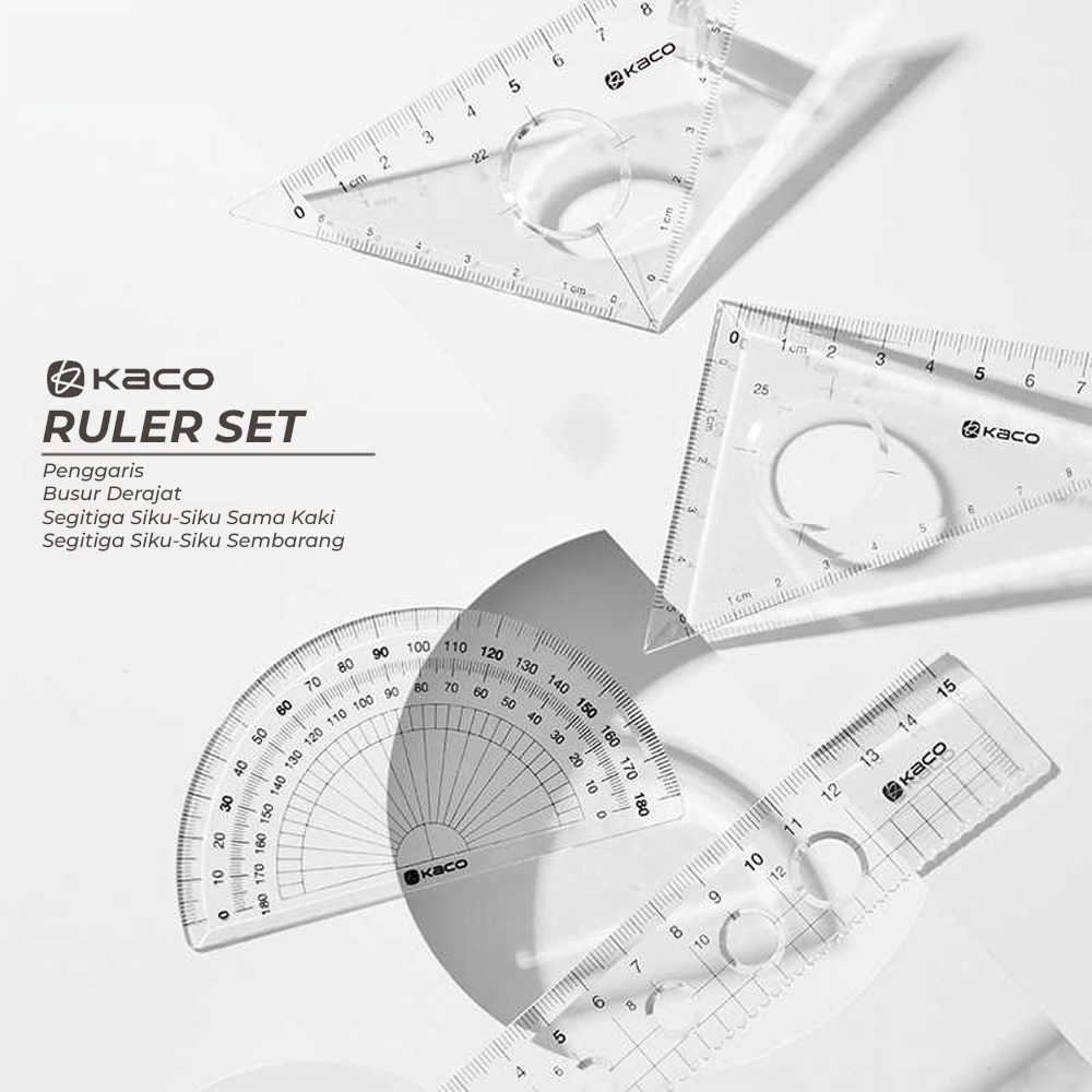Detail Set Penggaris Busur Kaco Xiaomi Right Choice Set Penggaris Ruler Set 4 Pcs - Transparent Matermatika Garisan SMA SMP Kuliah Kalkulus Derajat