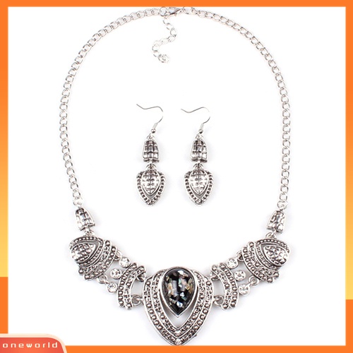 Detail Set Perhiasan Kalung Anting Berlian Imitasi Gaya Vintage Etnik Untuk Wanita