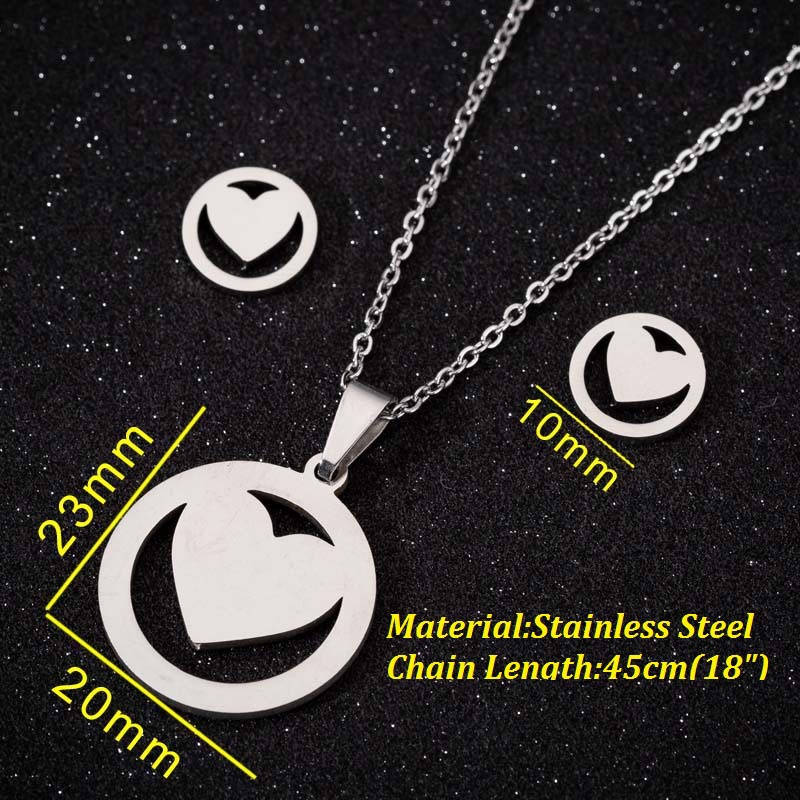 Detail Set Perhiasan Kalung Anting Bentuk Bulat Hati Bahan Stainless steel