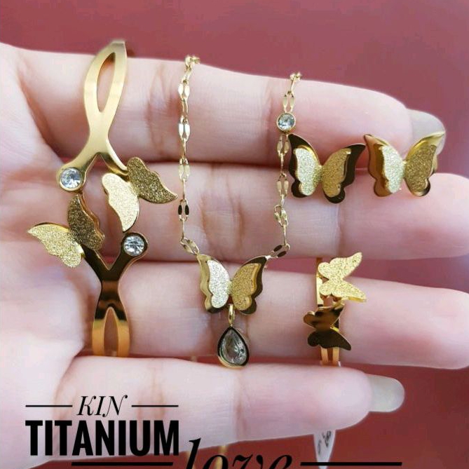 Set Perhiasan Titanium Motif Kupu-Kupu Awet Anti Karat 2305a1