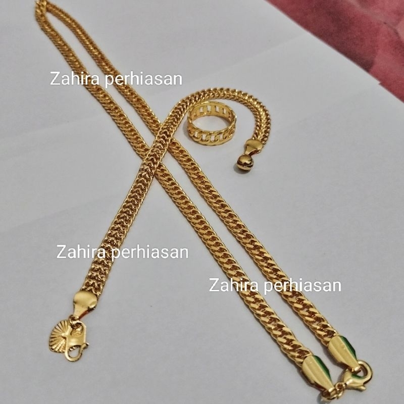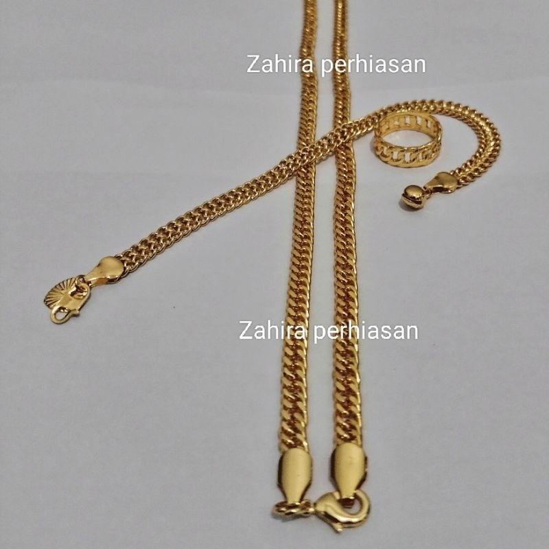 set perhiasan wanita motif rantai emas 24K