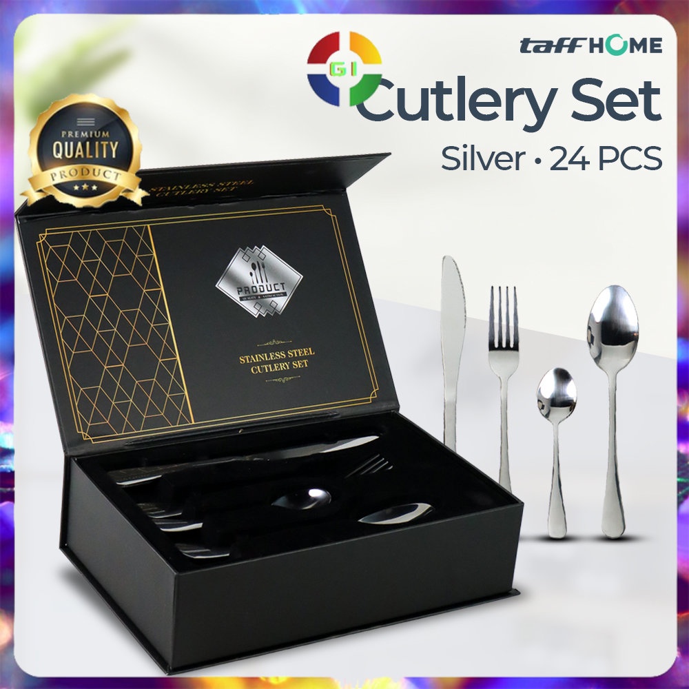 Fitur Set Peralatan Makan yang Lengkap Dalam satu set terdiri dari garpu, pisau, sendok makan dan sendok teh. Mata pisau yang tajam cocok untuk memotong daging dan sayuran, sementara garpu dengan gigi yang kuat cocok untuk mengambil makanan yang lebih besar. Sendoknya sendiri memiliki dua ukuran yaitu sendok makan yang didesain untuk pas di mulut, cocok untuk menikmati sup serta hidangan lainnya, dan sendok teh yang pas untuk menemani waktu minum teh atau kopi.