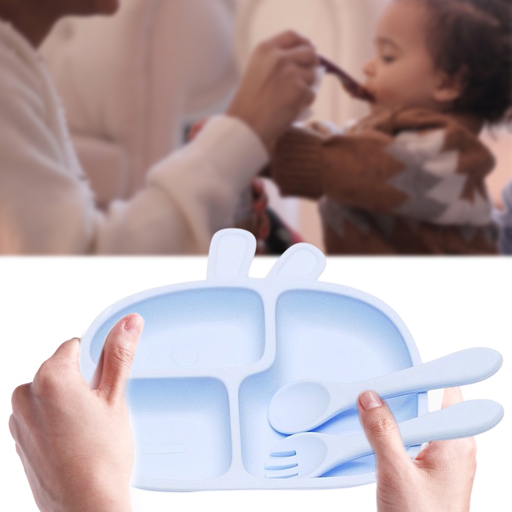 Detail Set Piring Sendok Silikon Suction Anti tumpah/Silicone Suction Plate Spoon Set/Silicone Feeding Set