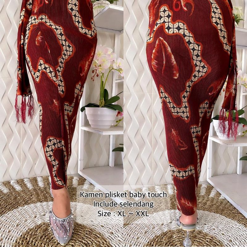 ❇ Rok Plisket ❇ Pinggang full karet ❇ Bahan melar, strait ❇ Belahan di bagian depan ❇ Sudah include selendang cantik