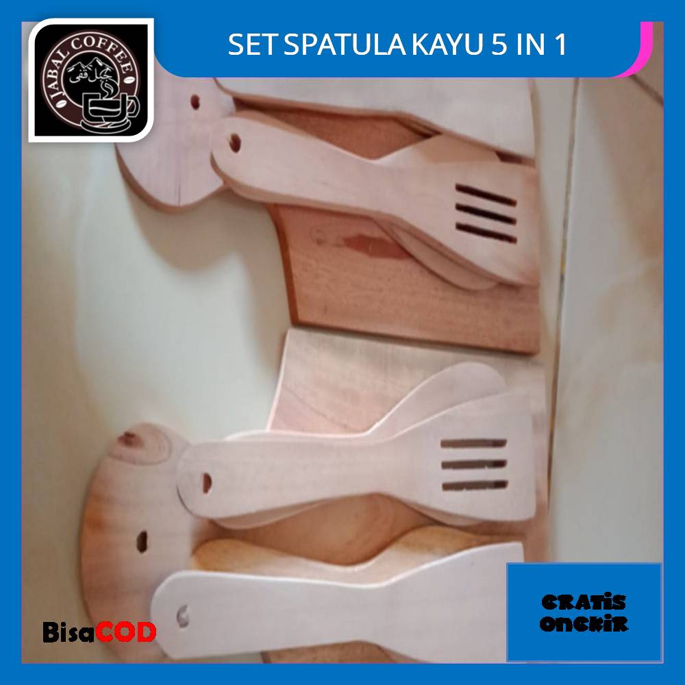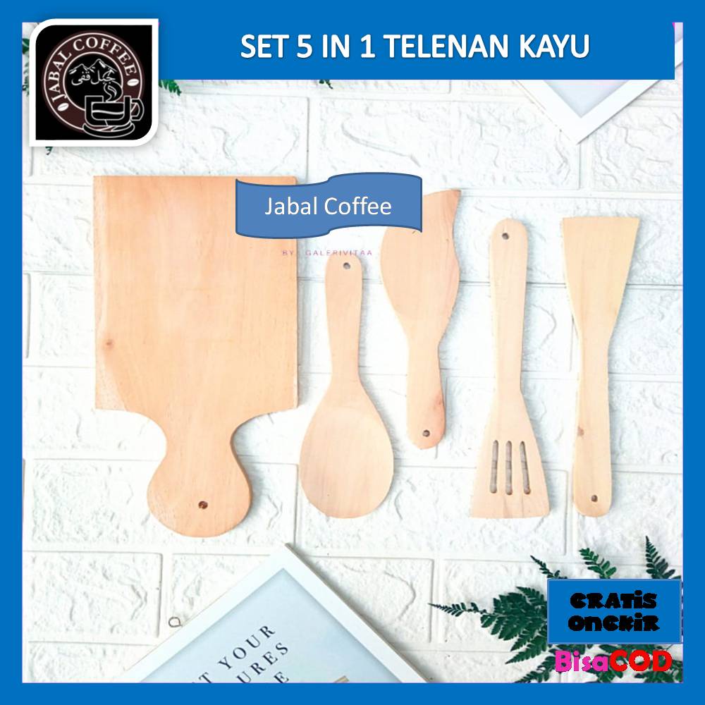Perlengkapan Rumah > Peralatan Masak > Spatula & Capitan > Set Spatula Kayu 5 In 1 Telenan / Set Spatula Masak Satu Set Kayu / Sutil Kayu Spatula Alat Masak Kode 048