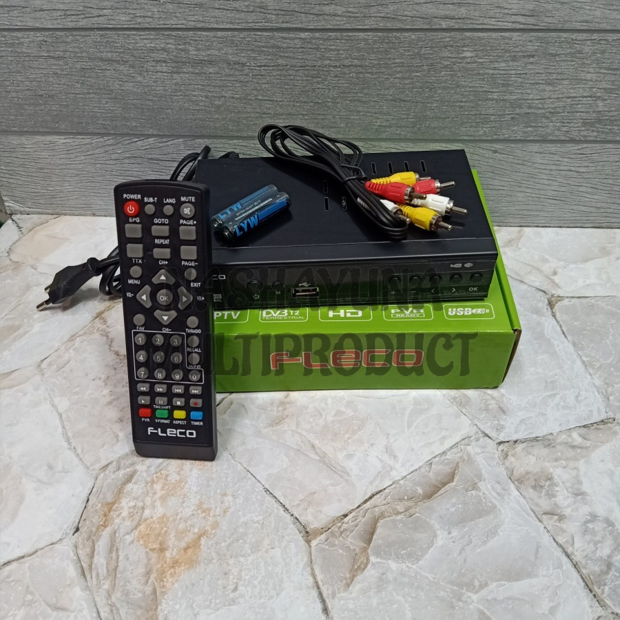 Set Top Box ECO DVB T2 adalah alat penerima siaran TV Digital berteknologi DVB-T2. DVB-T2 adalah standar teknologi untuk TV Digital yang dipakai di Indonesia. Set Top Box ini dipasang diantara Antena UHF dan Televisi, alat ini bisa dihubungkan pada berbagai macam jenis televisi seperti TV Tabung (CRT), LCD, LED, atau Plasma. DVB T2 Untuk Menerima Siaran TV yang Sudah Digital DVBC Untuk terima siaran dari jaringan TV KABEL YG FREE Siaran digital tv di setiap daerah berbeda. di daerah lain belum tentu dpt channelnya,karena setiap daerah belum tentu ada pemancarnya. jadi bukan kesalahan alat kami,jika seandainya pemancarnya di daerah anda belum ada dan anda tidak bisa terima siaran tersebut Teliti Dulu Sebelum membeli Terima Kasih Fitur FLECO DVBT2: - Sepenuhnya sesuai dengan DVB-T2 dan H.264, MPEG-4, standar MPEG-2 - Kecepatan maksimun arus minimal 50 Mbit/detik - Memiliki fitur Multimedia Player (MP3/MP4/JPEG/MOV/AVI/MKV dll) melalui USB 2.0 - Resolusi Video Output : 480i/576i/480p/576p/720p/1080i/1080P60Hz - Decoder Video hingga 1080p @30fps (Full HD, mendukung hingga 1080p) - Sepenuhnya mendukung fitur EPG (Electronic program guide) sampai 7 hari - Kapasitas penyimpanan hingga 1000 Channel TV dan program Radio - Mendukung Logic Channel Number (LCN) - Berbagai fungsi editing channel (favorit, memindahkan, mengunci, lompat, menghapus, mengubah nama, mencari, mengurutkan) - Upgrade software melalui USB - 4 digit tampilan LED pada panel depan - mampu mencari channel secara Otomatis dan Manual - Bahasa OSD : Bahasa Indonesia, Inggris, Rusia, Ceko, Denmark, Perancis, Jerman, Italia, Portugis, Spanyol, Swedia dll - Mendukung teleteks/subtittle/seleksi bahasa audio - Output : HDMI 1.3, CVBS, YPbPr, COAXIAL - PAL/NTSC Konversi otomatis Yang anda dapatkan dalam kemasan : 1. Set Top Box 2. Kabel Audio Video (RCA) 3. Remote Control 4. Buku Manual 5. Baterai