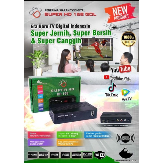untuk tv digital t2 cocok untuk daerah yg sudah terjangkau T2 Keunggulan: - MEECAST - Share Tampilan dari hape ke TV (Perlu dongle Wifi) - FULL HD 1080p - Gambar lebih Bersih. Lebih Jernih. Tanpa Semut - YOUTUBE dan YOUTUBE KIDS - Dengan dongle Wifi - PORT USB 2x PORT -MEMILIKI EWS PERINGATAN DINI - RAM 8 MB - CPU TAHAN PANAS