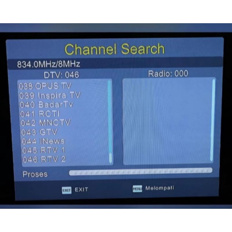 Set Top Box TV Digital Merek Goldsat Revo untuk terima siaran TV digital, menggunakan antena TV UHF.