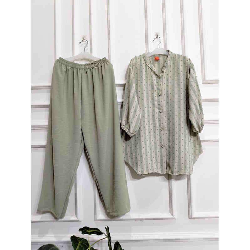 SET WANITA BAHAN AIRFLOW CRINCLE SALUR GARIS/SET WANITA KANCING/STELAN WANITA TERBARU/TERMURAH/ONE SET KEKINIAN/TERVIRAL/COD/JUMBO/BAHAN JATUH/TERHITS/BAJU SANTAI/BAJU NON FORMAL/BAJU SEHARI-HARI/BUSUI/KANCING HIDUP/LIZAM/XXL/ONE SET TERBARU/STELAN WANITA