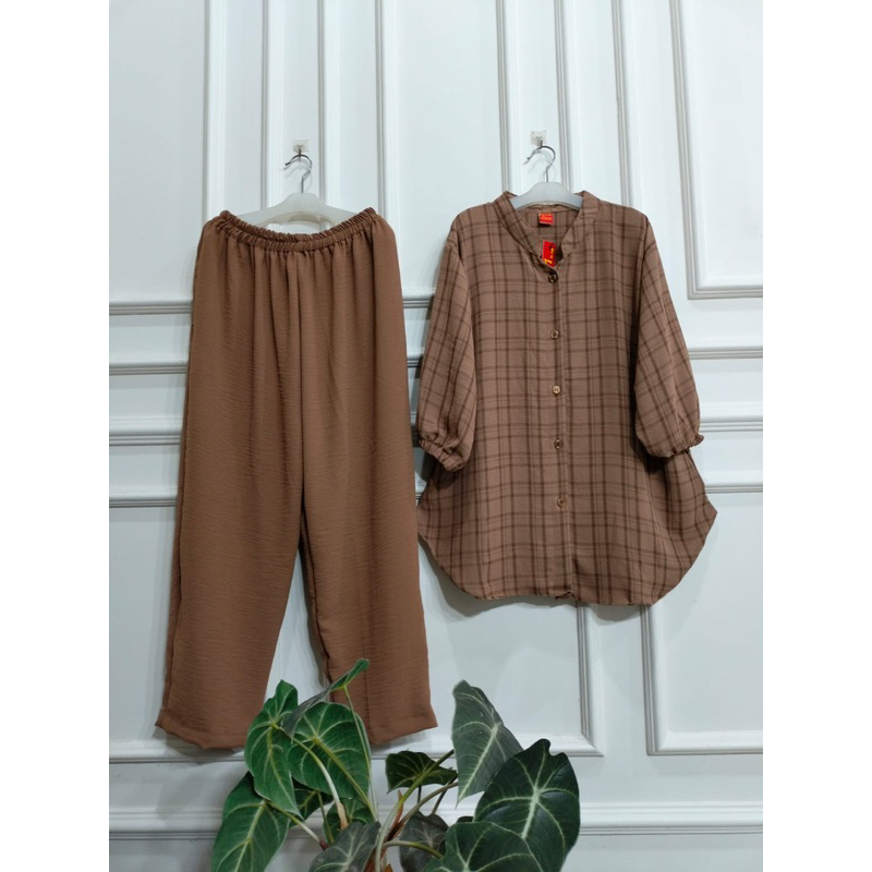 SET WANITA BAHAN AIRFLOW CRINCLE KOTAK BESAR/SET WANITA KANCING/STELAN WANITA TERBARU/TERMURAH/ONE SET KEKINIAN/TERVIRAL/COD/JUMBO/BAHAN JATUH/TERHITS/BAJU SANTAI/BAJU NON FORMAL/BAJU SEHARI-HARI/BUSUI/KANCING HIDUP/LIZAM/XXL/ONE SET TERBARU/STELAN WANITA