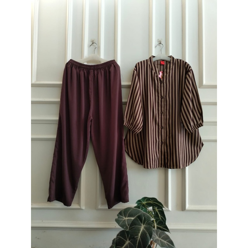 Detail SET WANITA BAHAN RAYON MOTIF SALUR KOMBINASI/SET KANCING HIDUP SALUR /SET WANITA TERMURAH/STELAN WANITA TERBARU/TERMURAH/ONE SET KEKINIAN/TERVIRAL/COD/JUMBO/BAHAN JATUH/TERHITS/BAJU SANTAI/BAJU NON FORMAL/BAJU SEHARI-HARI/BUSUI//LIZAM/XXL/ONE SET TERBARU