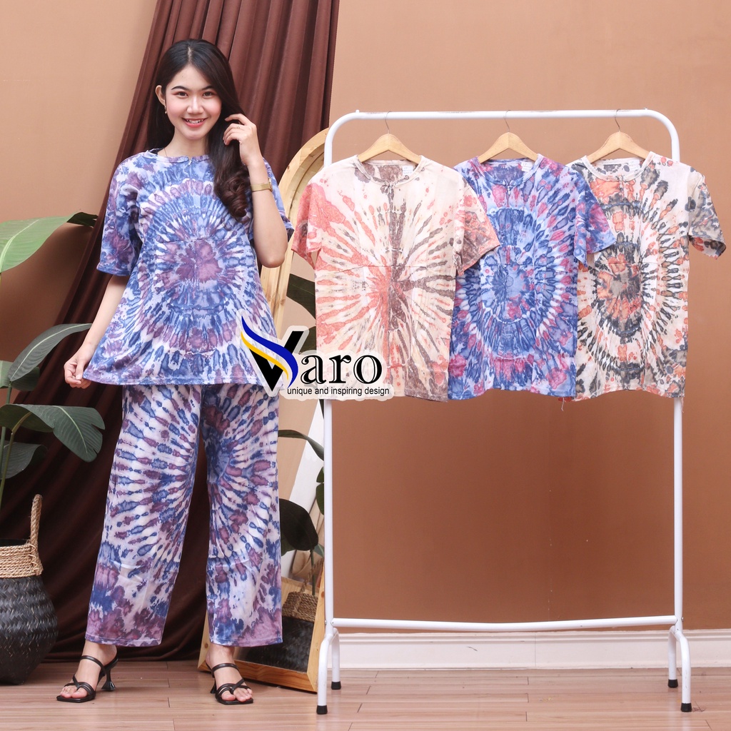 SET PIYAMA KAOS TIEDYE ❤ MATT. KAOS 30S ❤ PROSES 100% TIEDYE HANDMADE ❤ ADA RESLETING DEPAN BUSUI FRIENDLY ❤ BUKAAN RESLETING 21 CM