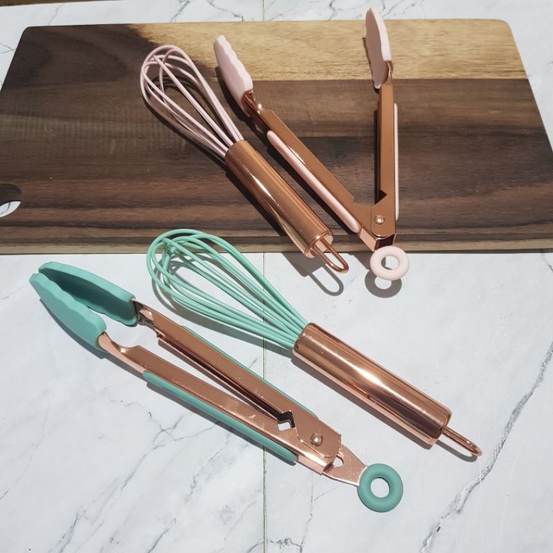 Perlengkapan Rumah > Peralatan Masak > Pengocok Telur > SET Whisk tongs mini capit kocokan telur rosegold silicon silikon kue
