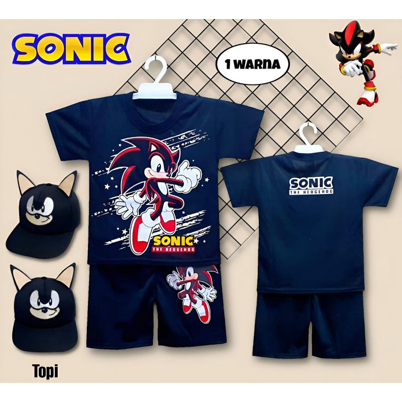 SETELAN ANAK ANIMASI KARTUN SONIC DITAMBAH TOPI USIA 1-10THN/SETELAN SONIC /TOPI SONIC/TOPI TAYO