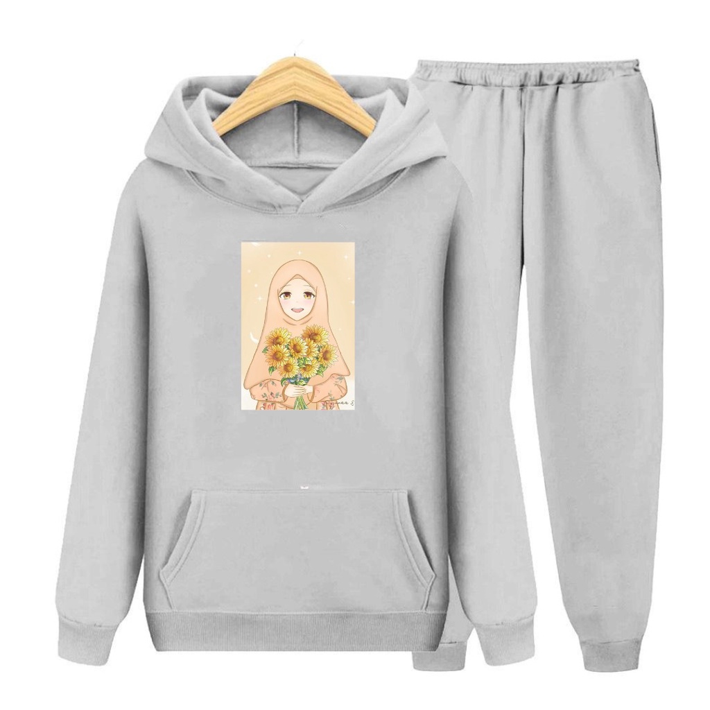 Detail Setelan anak hijab Bunga Matahari/set Baju hoodie topi