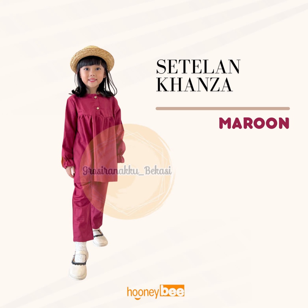 Video perkenalan produk Setelan Anak Khanza Linen Hooneybee Junior Warna Maroon Size 2-10 Thn. Sumber: Shopee.