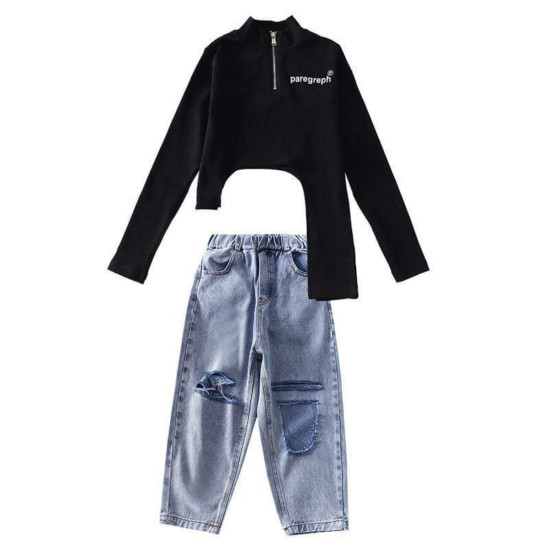 Detail Setelan Anak Korea Trendy Fashionable BLACK