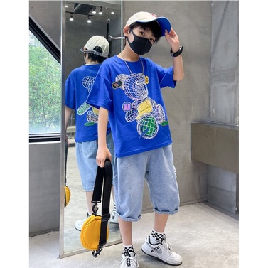 Setelan anak laki laki import MOTIF HELPING KIDS +JEANS TEBAL- setelan anak teenager laki laki import