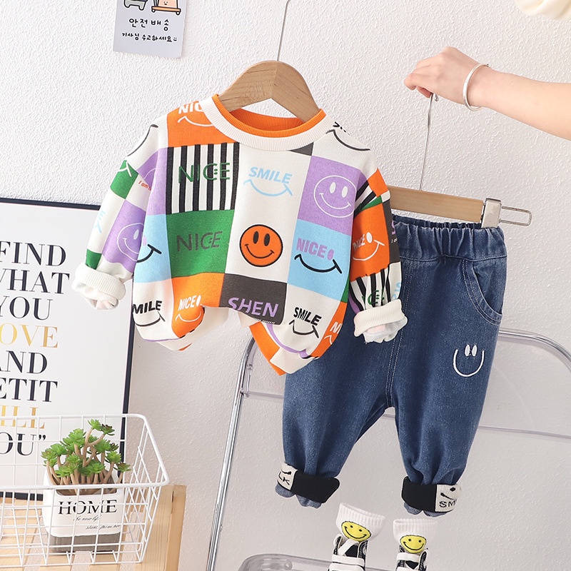 Baju Setelan Anak Laki Laki Import : - 1pc Atasan Kaos Lengan panjang babytery - 1pc celana softjeans - pinggang full karet