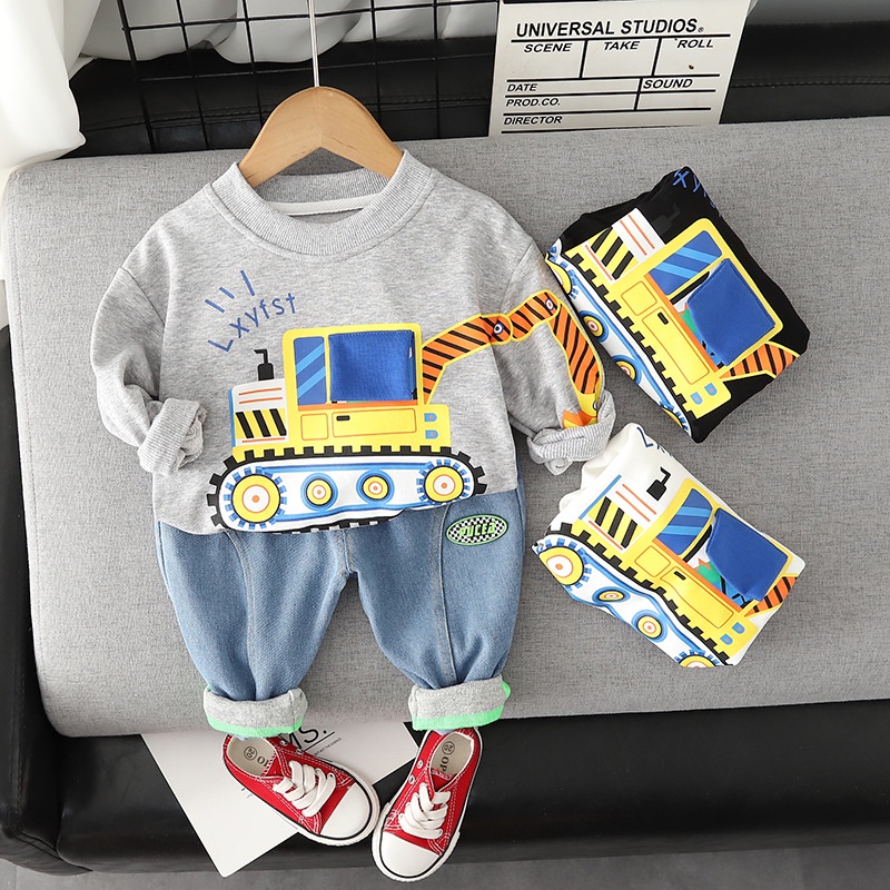 Detail Setelan Anak Laki Laki Jeans Set TROKIE 2in1 Sweater Long Sleeve and Pant Anak Import