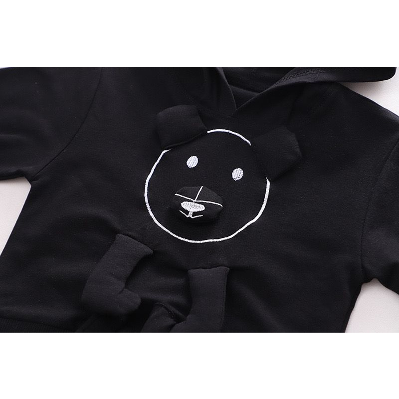 Detail setelan anak lengan panjang unisex motif black dog lucu usia 6 bulan sampai 5 tahun