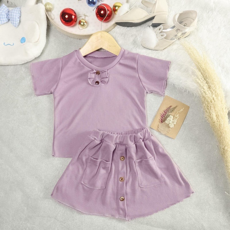 Detail Setelan Anak Lullaby 1-3 Tahun Rib Ruffle Kancing